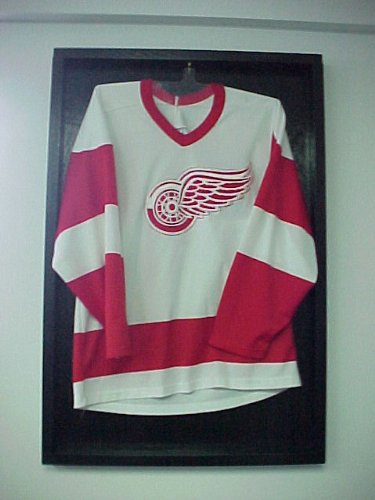 Glossy Black Shadow Jersey case This Glossy Black Shadow box Jersey Display case will hold your prized Autographed Jersey, T-Shirt, Boxing Shorts along with various other items. It's also deep enough to display a plaque, flag, coat & ect... This fine case comes ready to hang on your wall and has gator tooth hangers installed for mounting. Its Made from a solid Hardwood and has a slide in standard UV acrylic front door for easy installation. The outside Size is 24" x 35" x 2 1/4". the inside size is 22.5" x 33.5" x 2" These cases will work for most football, basketball, hockey, baseball jerseys including adult XL sizes, in some cases you might have to fold the jersey a little